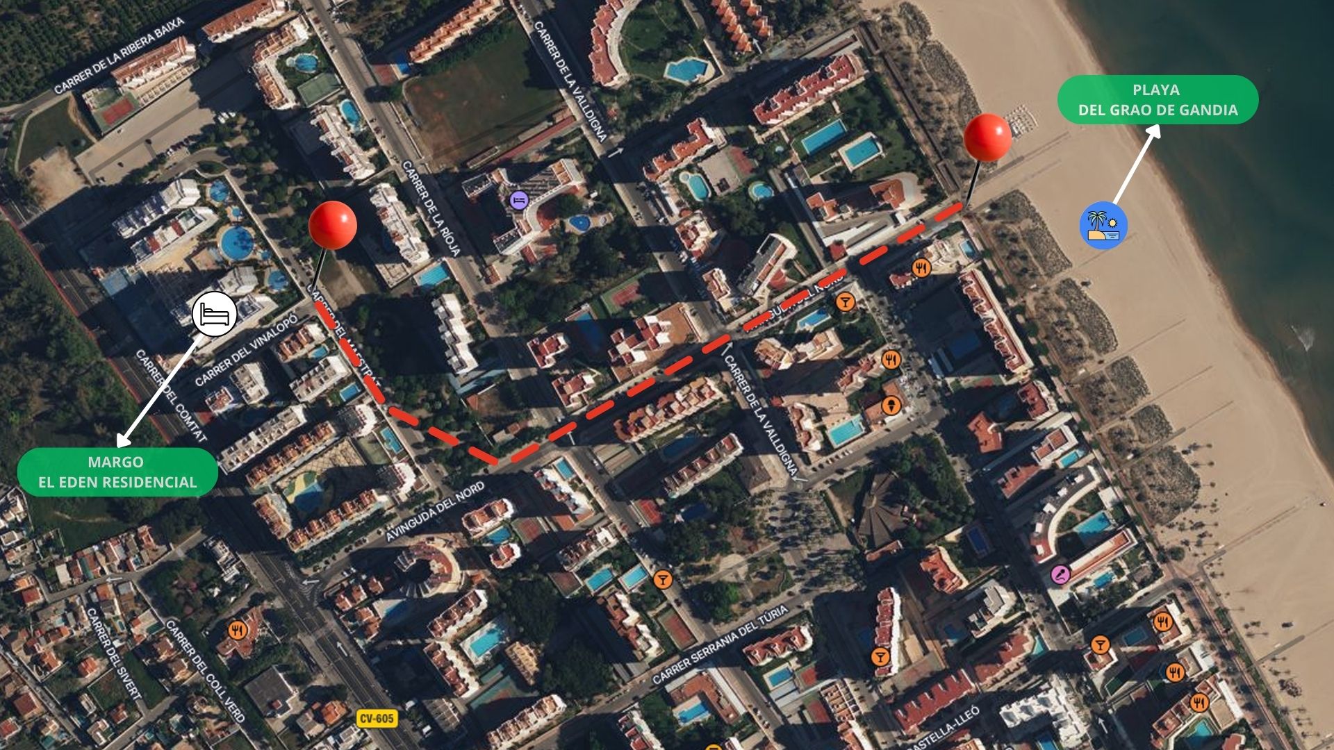 El Eden Residencial to piękna wspólnota w Playa de Gandia, gdzie luksus spotyka się z naturą, tworząc rajski zakątek na ponad 7 tysiącach metrów kwadratowych. To miejsce to nie tylko doskonała baza wypadowa do odkrywania uroków Walencji, Denii czy pobliskich gór, ale także oaza relaksu z kompleksem basenów, zielenią, placami zabaw i wieloma udogodnieniami.